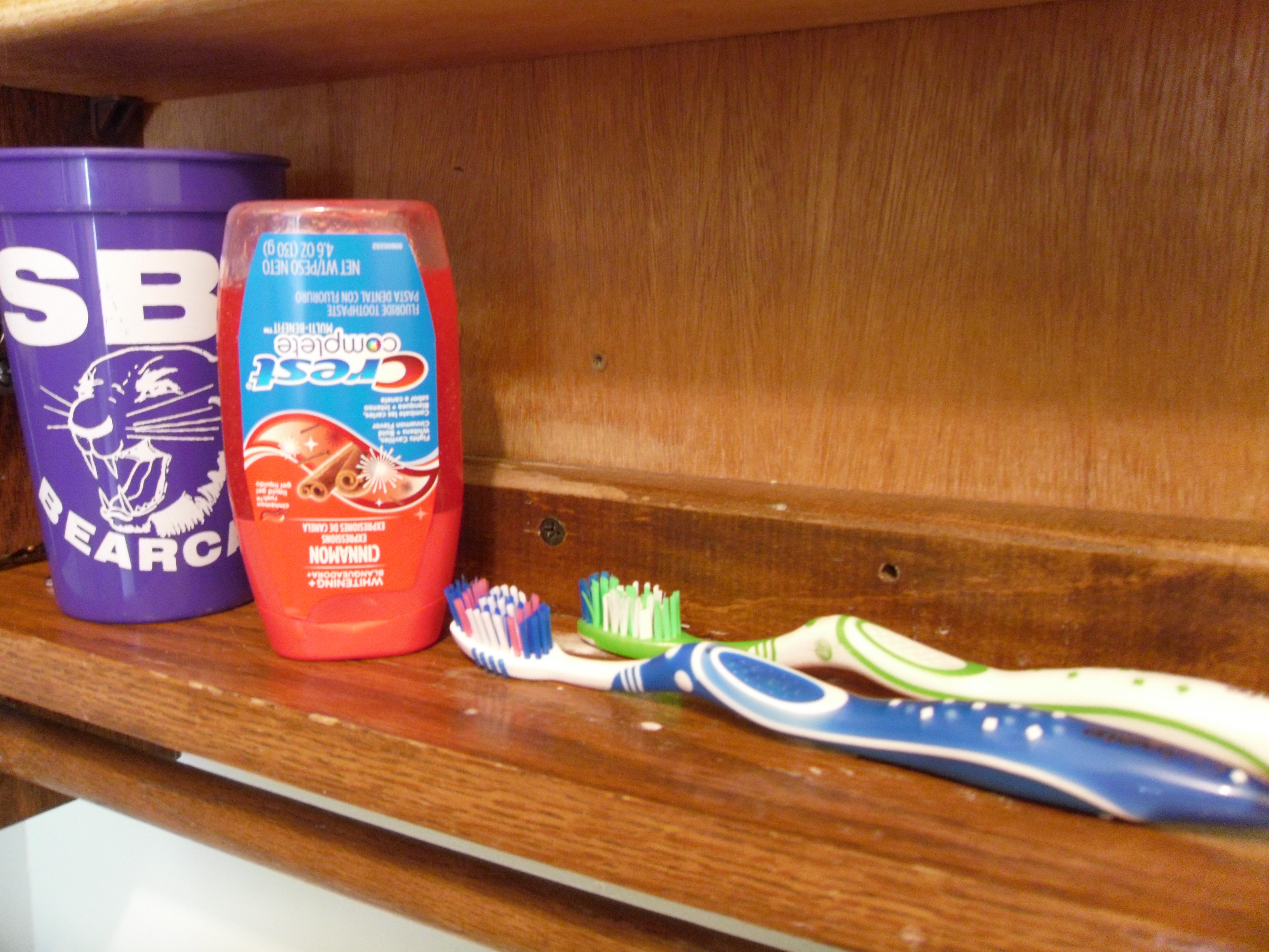 That ended in a couple of weeks. Though I switched to Crest, because it wasn’t a make-or-break issue to me, I tend to squeeze at the top of the tube and leave it lumpy. That drove Matt crazy, and he would undo what I had done by pressing from the end and folding the tube precisely.